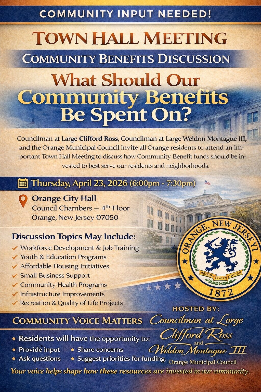 THE CITY OF ORANGE TOWNSHIP COUNTY OF ESSEX STATE OF NEW JERSEY PUBLIC NOTICE Public Information Session – City of [...]