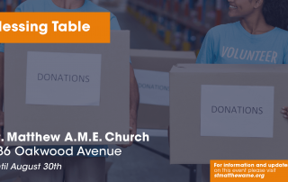 Blessing Table Bring Something or Take Something Completely FREE! - Date: Sunday August 30th, 2020 Time: 1pm-3pm Place: St. Matthew A.M.E. Church - Parking Lot 336 Oakwood Ave, City of Orange, NJ 07050 - Donations Needed Canned food items, Mouth Wash, Baby Wipes Jarred food, Shower Gel - men/women, Baby Food Pasta, Laundry Detergents, Paper Towel Rice, Wipes, Toilet Paper [...]