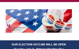 OUR ELECTION HOTLINE WILL BE OPEN Tuesday, July 7 - Primary Election Day Questions concerning disability-related voting issues? Disability Rights New Jersey has answers to help you navigate voting in this year's election. Our Election Hotline Will Be Open Tuesday, July 7 Primary Election Day from 7:00 am - 8:00 pm If you experience accessibility or discrimination issues when voting, or if you want to report an inaccessible voting location, [...]
