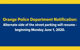 Orange Police Department Notification: - Alternate side of the street parking will resume - beginning Monday June 1, 2020. -