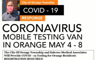 The City of Orange Township A Mobile Testing Unit will be available for Orange residents to undergo tests for COVID19. _ Testing for Orange residents continues on Tuesday, May 5 through Friday, May 8, from 10:45 am to 6:00 pm at the following locations: - Tuesday, May 5 at City Hall, 29 North Day Street, Orange, NJ - Wednesday/Thursday/Friday, May 6-7-8, at the Orange Police Department More testing dates and locations will be announced. [...]